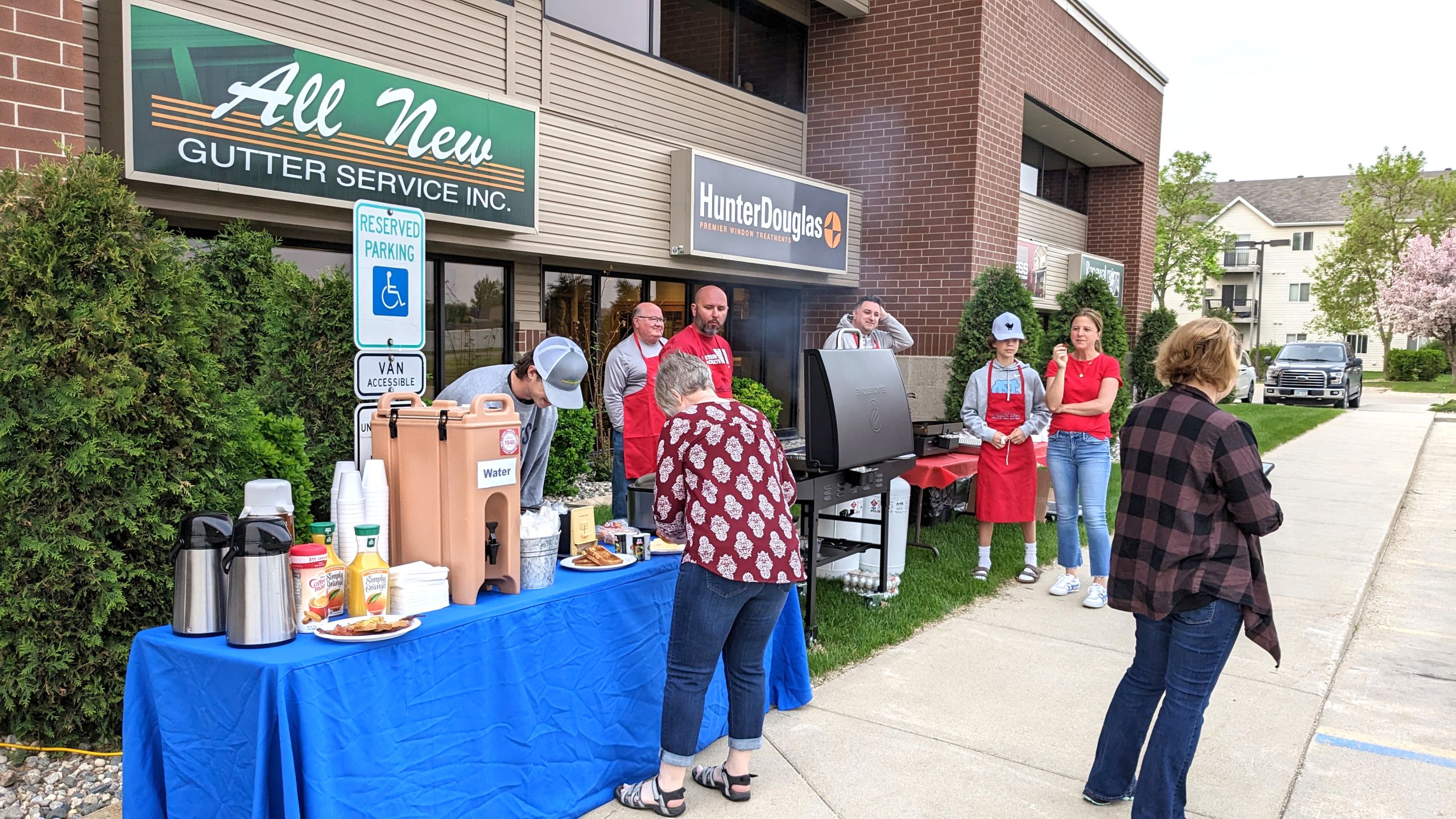 It’s the most important meal of the day! We started our 75th anniversary events off right this year with a grilled breakfast of eggs, bacon, toast, coffee, and more, all prepared with love by our wonderful coworkers. We invited members of the community to stop by for a free meal, and we welcomed the crew from AM 1100 The Flag WZFB radio station to cover the festivities!